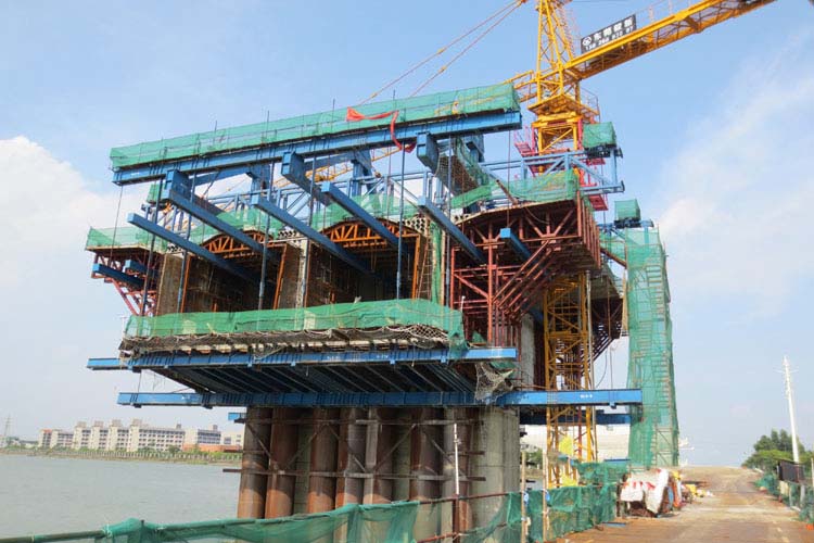 組成部分:承重結(jié)構(gòu)、懸吊系統(tǒng)、錨固裝置、走行系統(tǒng)和工作平臺 。承重結(jié)構(gòu)是掛籃的主要受力構(gòu)件, 它承受施工設(shè)備和新澆筑節(jié)段混凝土的全部重量, 并 通過支點(diǎn)和錨固裝置將荷載傳到已施工完成的梁身上。