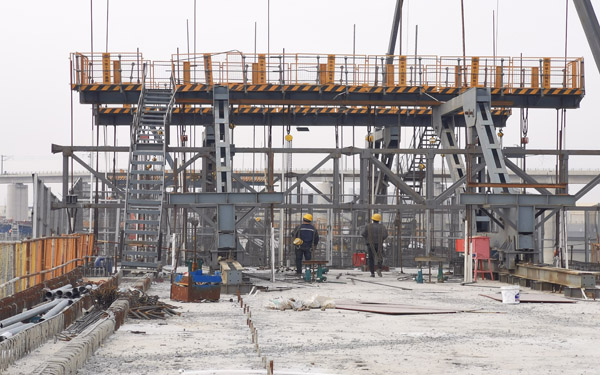 (3)檢查墩身預埋件和斜拉鋼帶的位置及堅固程度,是否符合設計要求。