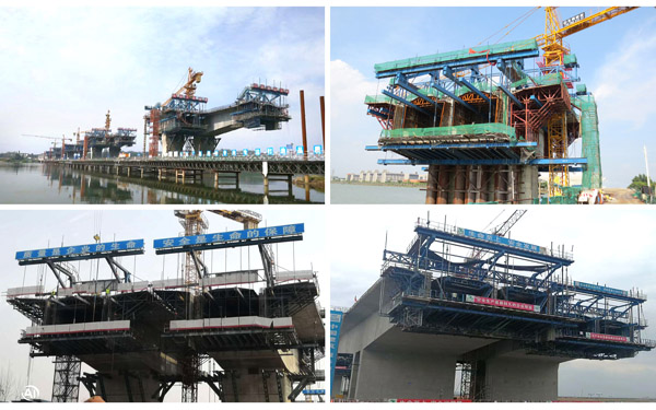 (2)在墩上進行零號塊施工并以斜拉托架做施工平臺時,在平臺邊緣處,應設安全防護設施。